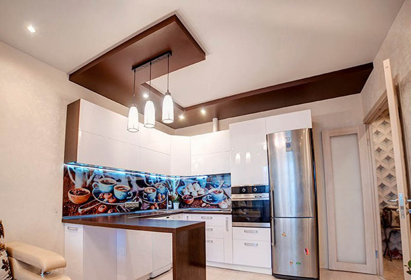 Matowy biały sufit napinany do kuchni S = 12 m2