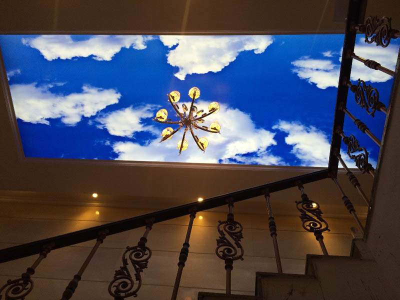 Najczęściej w domach wiejskich i domkach wybierają: sufity z tkanin, sufity szybujące, sufity napinane teksturowane, sufity napinane z nadrukiem fotograficznym, sufity DOUBLE VISION, sufity napinane gwiaździste niebo, sufity napinane dwupoziomowe i sufity podświetlane dwupoziomowe.