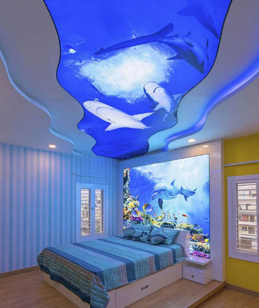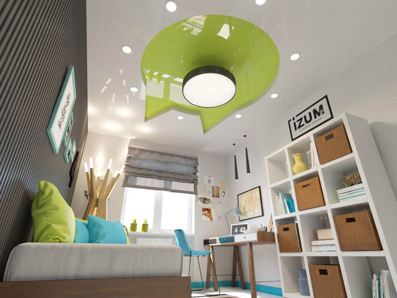 Najczęściej wybierają do pokoju dziecięcego: sufity z nadrukiem fotograficznym, dwupdoziomowe sufity z oświetleniem, rzeźbione Apply, sufity z designerskim oświetleniem, sufity z połyskiem i sufity z ekskluzywną teksturą, sufity „gwiaździste niebo”.