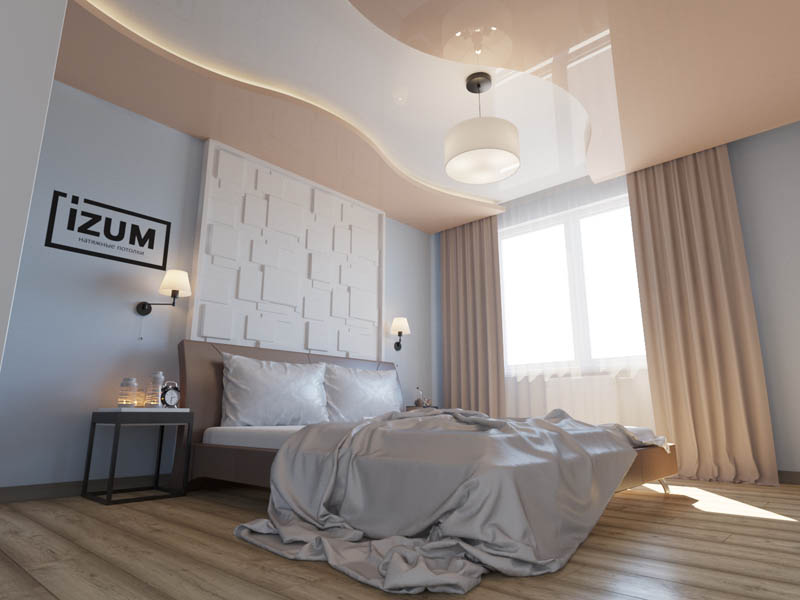 Każdy z nas ma specjalne wymagania dotyczące sufitu w sypialni. Nie powinien wyglądać agresywnie i powodować niepokoju, irytacji. Przeciwnie, jego zadaniem jest relaks i spokój. Jednocześnie ważne jest, aby sufit był harmonijny z wnętrzem, wyglądał nowocześnie i stylowo. Konieczne jest, aby sufit napinany w sypialni był absolutnie hipoalergiczny, ponieważ we śnie spędzamy trzecią część naszego życia. Sufity napinane IZUM idealnie pasują do wszystkich tych kryteriów.