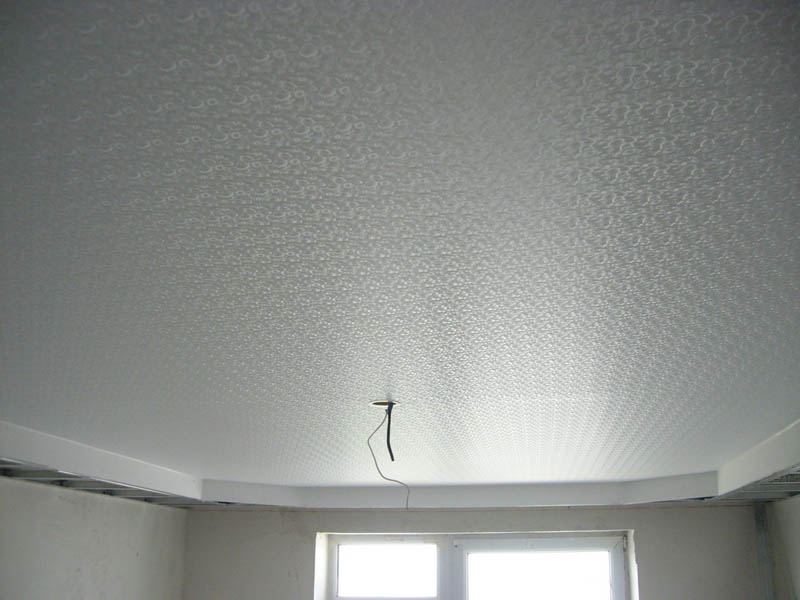 Podstawa teksturowanego sufitu wykonana jest z oryginalnej folii PCV z imitacją wzoru lub o chropowatej powierzchni. Ma charakterystyczny sufit i wykończenie.